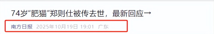 南方日报|74岁“肥猫”郑则仕被传去世,最新回应→2025