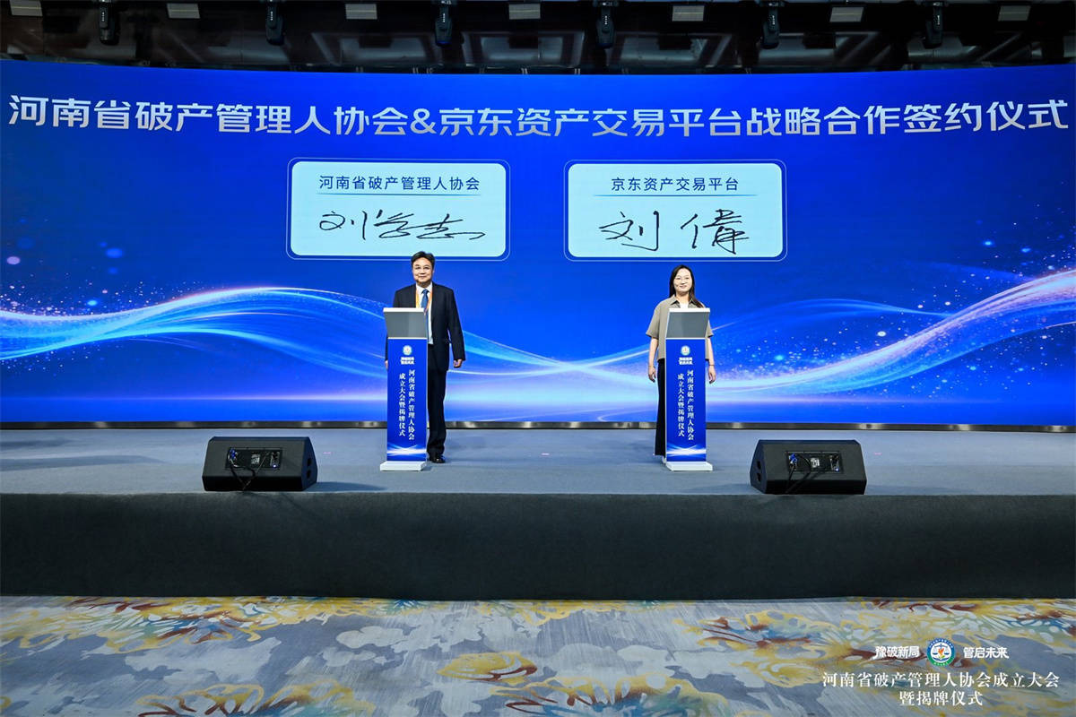 大会期间,河南省破产管理人协会与京东资产交易平台签署战略合作协议。双方将共同推动破产资产处置的数字化、专业化发展,提升资产处置效率和透明度。