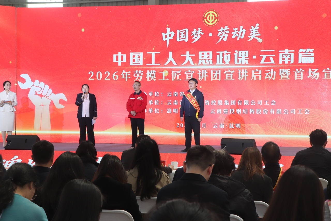 云南省总工会党组成员、副主席李琦介绍,2026年首场宣讲设在生产一线、车间工位,就是要让劳模工匠与一线职工、青年学生同堂交流,彰显“课堂在基层、讲台在一线、主角是职工”的鲜明导向,让党的创新理论和劳模精神、劳动精神、工匠精神,在最贴近职工、最需要力量的一线落地生根、开花结果,并辐射全省、贯穿全年。