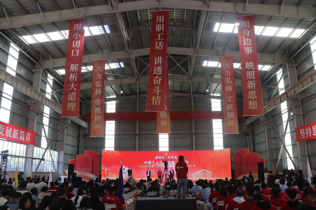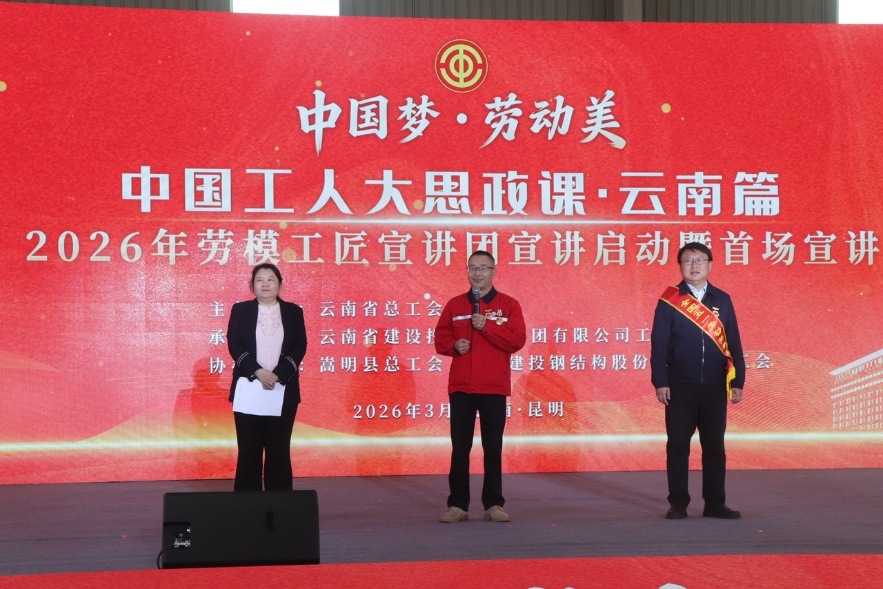 3月27日,由云南省总工会主办、云南省建设投资控股集团有限公司工会承办的“中国工人大思政课·云南篇”2026年劳模工匠宣讲团宣讲启动暨首场宣讲活动在云南建投钢结构股份有限公司杨林总厂举行。思政课堂搬到生产一线、讲台扎在厂房车间,吸引了约400名劳模工匠、企业职工、青年学生现场观看,线上直播约24万名职工收看。