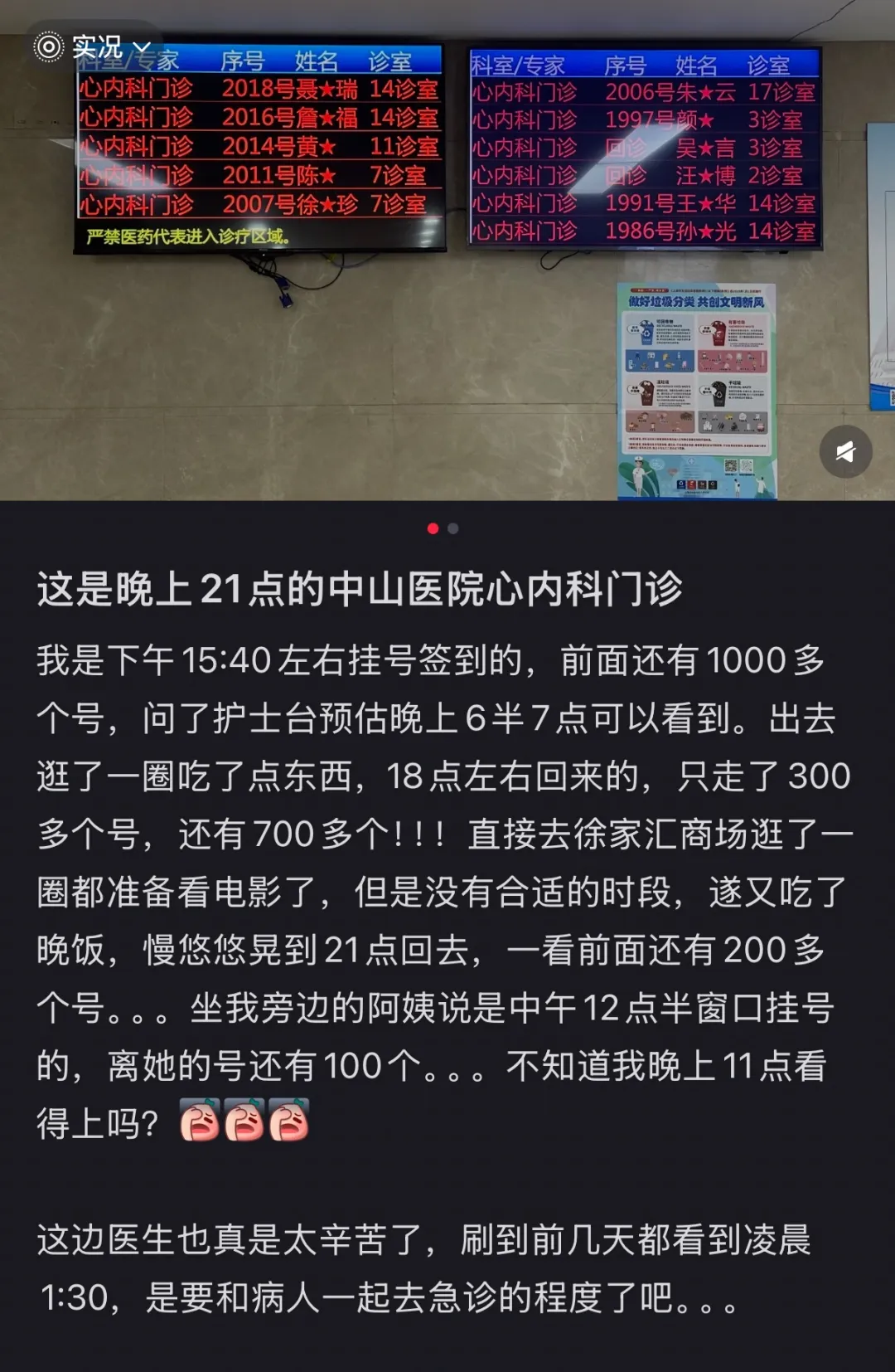 沪上医院的心内科门诊迎来了大批检查者上海中山医院一则帖子